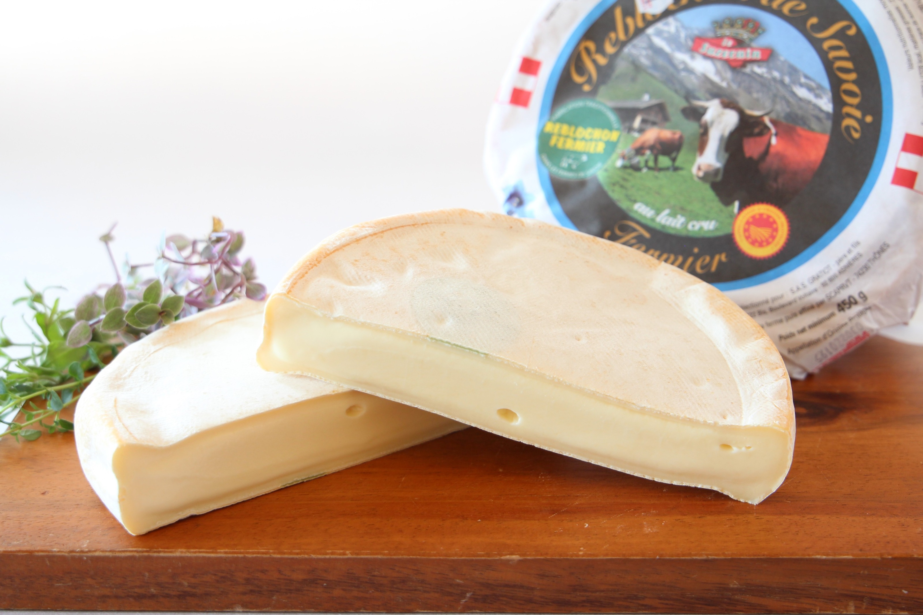 サヴォワの山のチーズのひとつ。非加熱とはいえ圧搾されて作られるセミハードチーズです。中身がここまでクリーミーにやわらかくなるのは、熟成士の技の見せ所。経木で上下を挟み、さらに経木の棚で熟成させるため、独特の木の香りがチーズにも移っています。表面のカゼインマークは食べられますが、外皮と一緒に取り除いて食べるのが本場流!ちなみに緑色が農家製、赤のマークは工場製です。