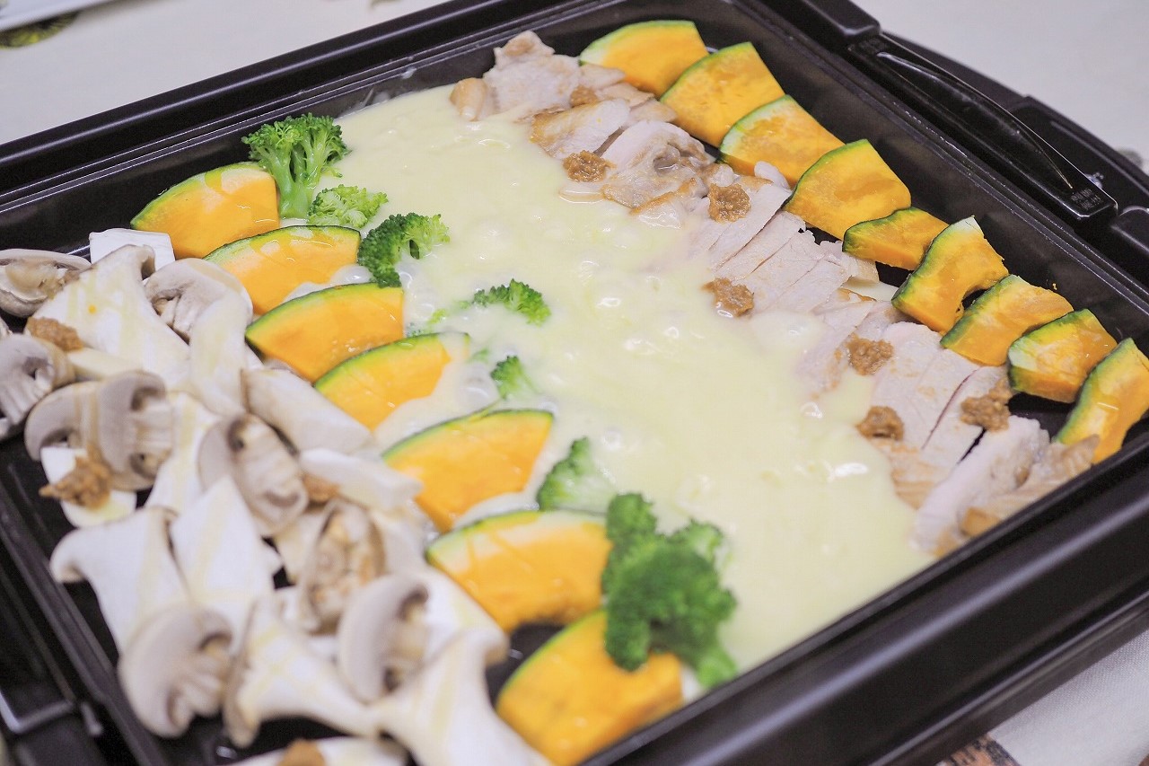 フォンデュ専用鍋がない方はホットプレートでもお楽しみいただけますし、