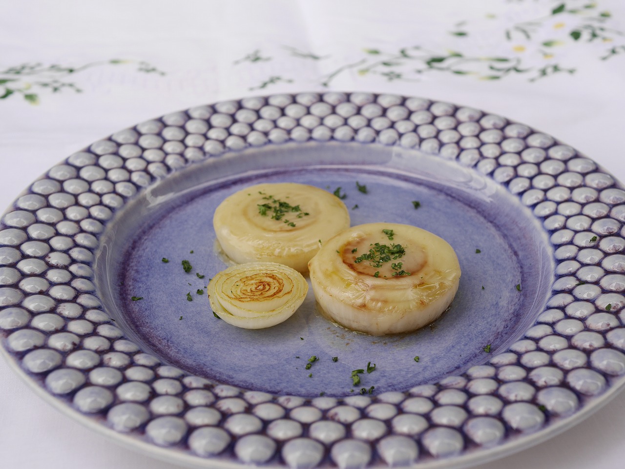 新玉ねぎを輪切りにしてオリーブオイルを絡め塩をふりフライパンでじっくりソテー。